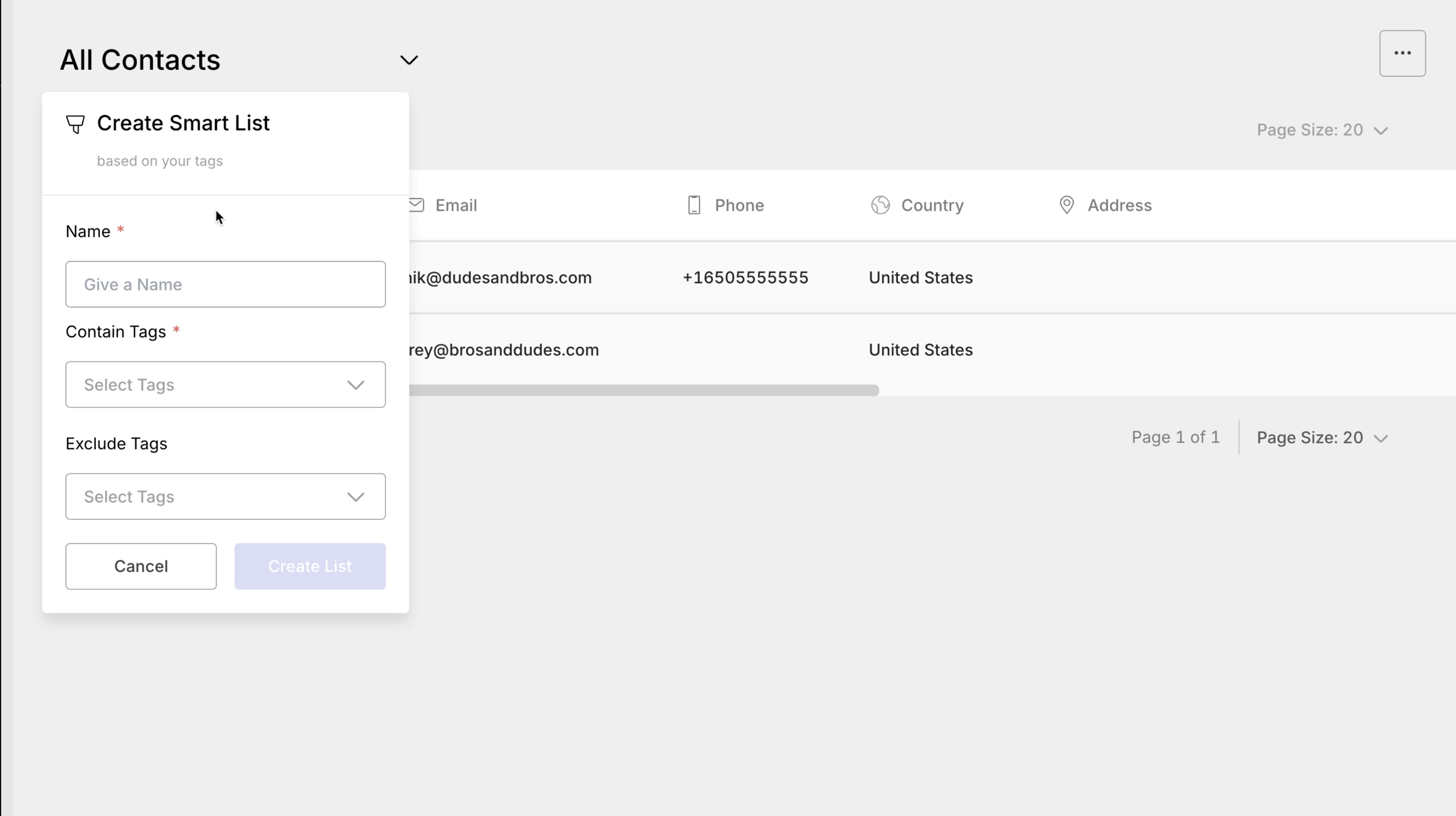 NOTE: SMART LISTS ARE DYNAMIC. IF A CONTACT’S TAGS CHANGE, THEY MAY AUTOMATICALLY ENTER OR EXIT A SMART LIST.