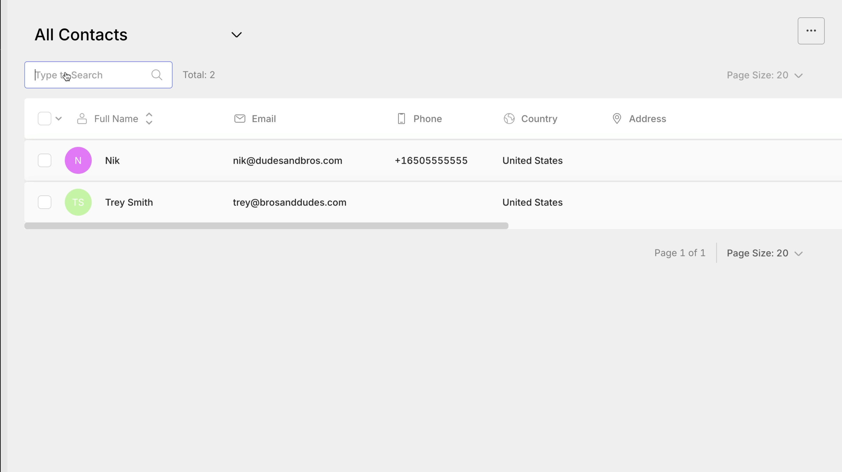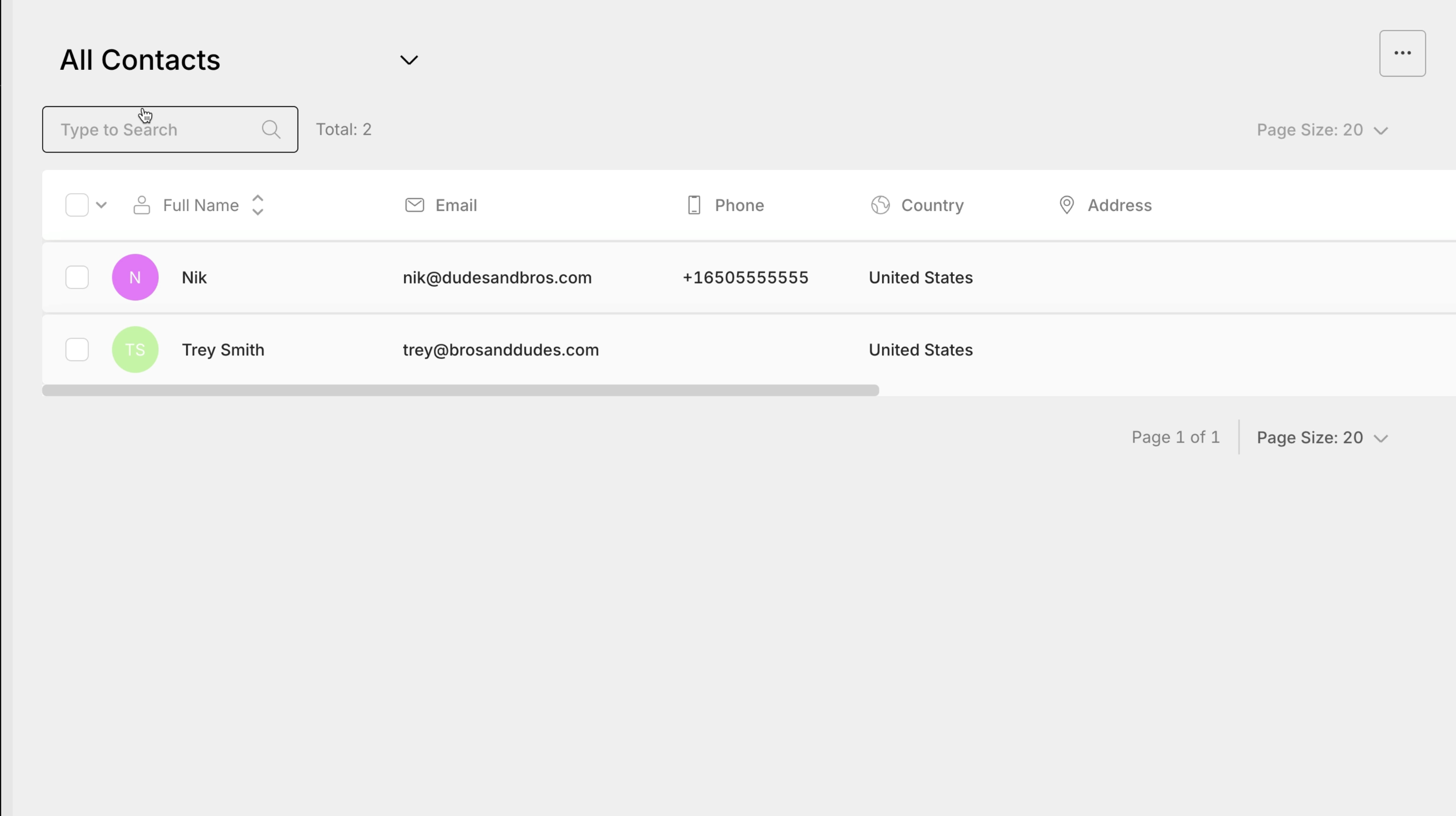 In your Contacts dashboard, you’ll see a table listing all known information: