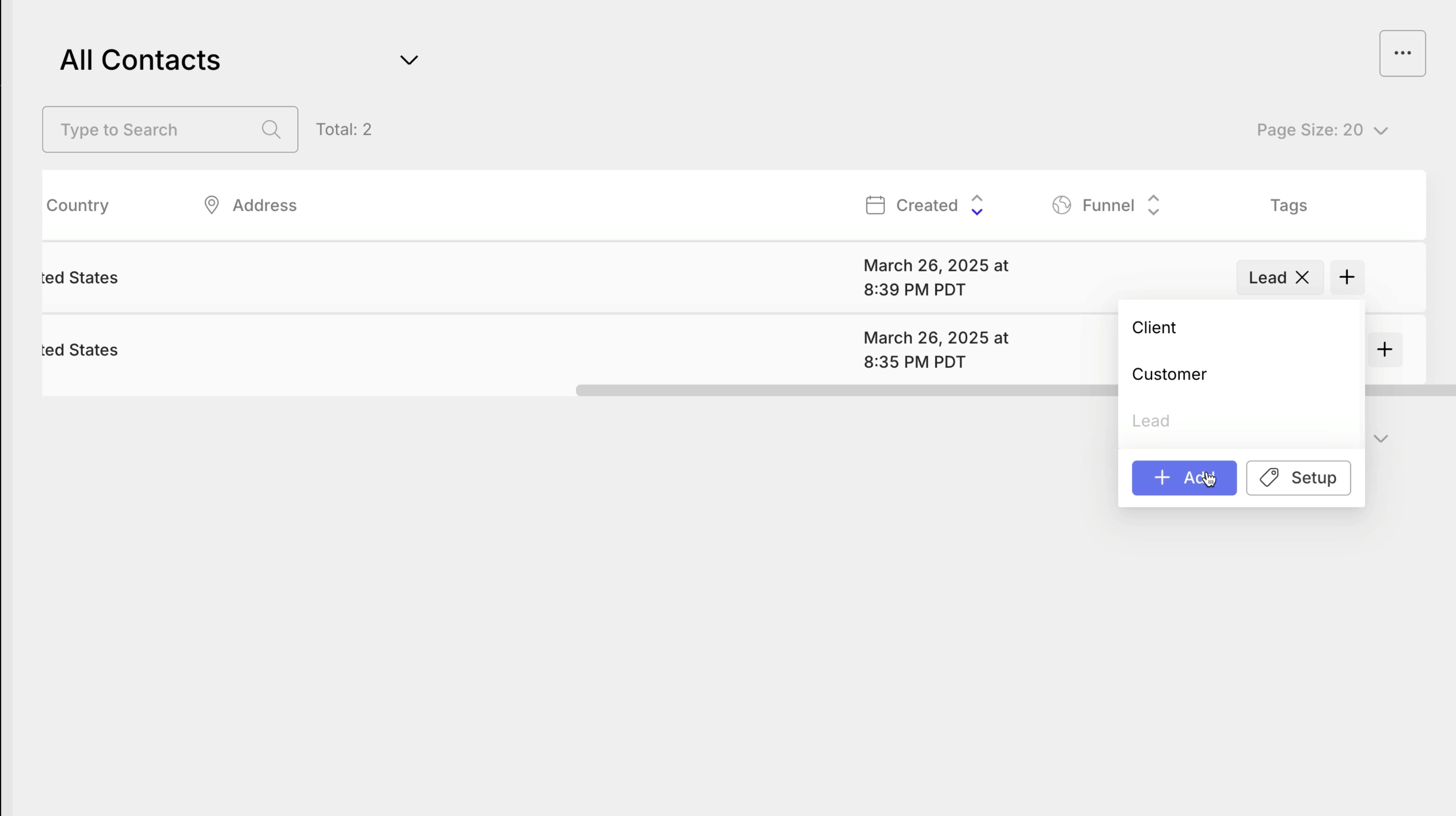- Unified Repository: Whether through funnels, pages, or manual import, your contacts reside here.